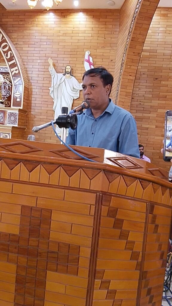 A large gathering of parishioners was present to listen to the important message. The session began with introductory remarks by Mr. Shahzad Lawrence, who briefed the audience about the purpose of the visit and emphasized the importance of minority participation in welfare schemes. He encouraged the community to remain proactive and avail the opportunities being provided by the government under the Dhee Rani Program.