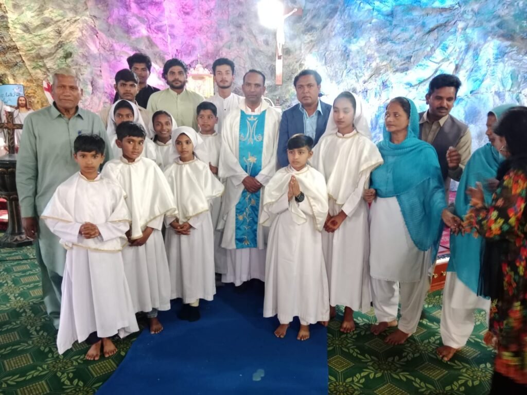 Easter Celebrations 2024Today, I attended Easter Mass at ST. Mark’s Parish, Chan Da Qila, Gujranwala. A group photograph was taken with Rev. Fr. Zafar Tanveer The Parish Priest and others. You Might Also Like The false blame of desecrating the Holy Quran by a ChristianApril 19, 2024 A Christmas Cake celebration with the Superintendent of Police GujranwalaDecember 12, 2023 Life Skill Training Drug Abuse Prevention Program – March 2017July 7, 2024