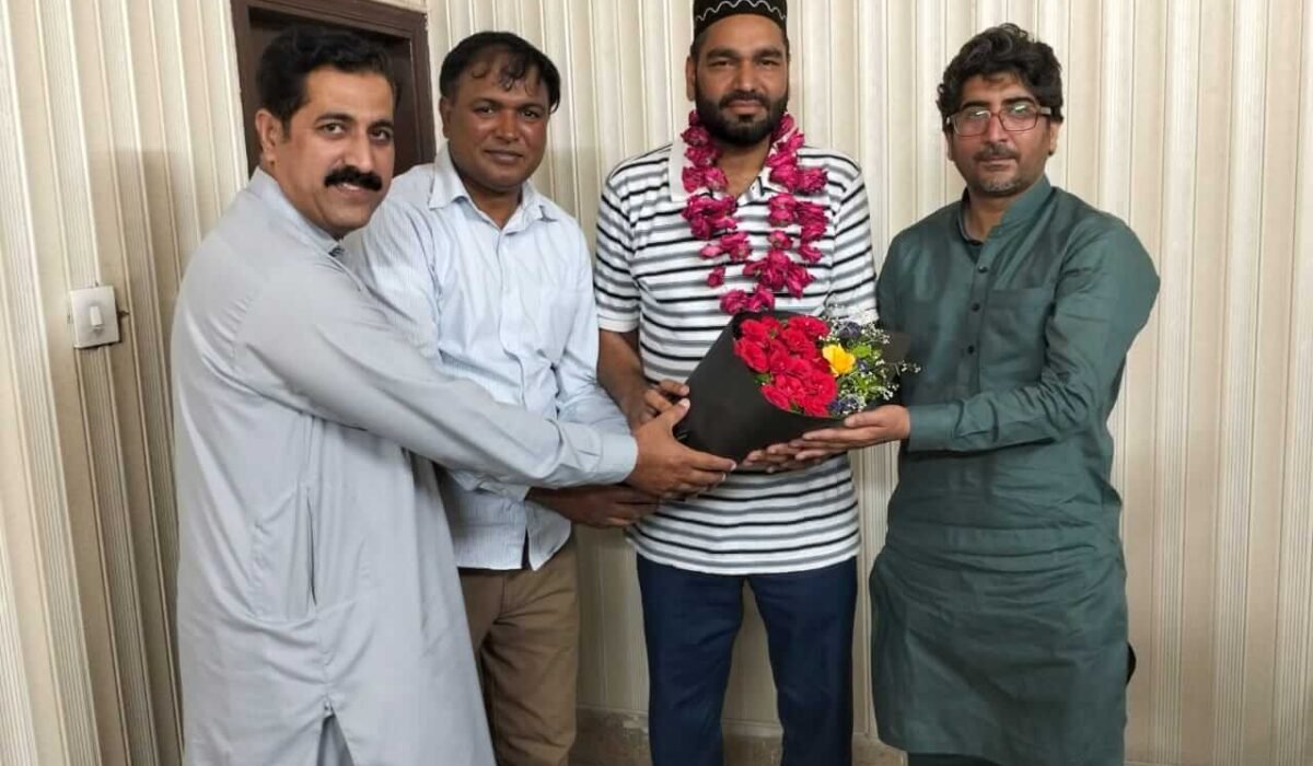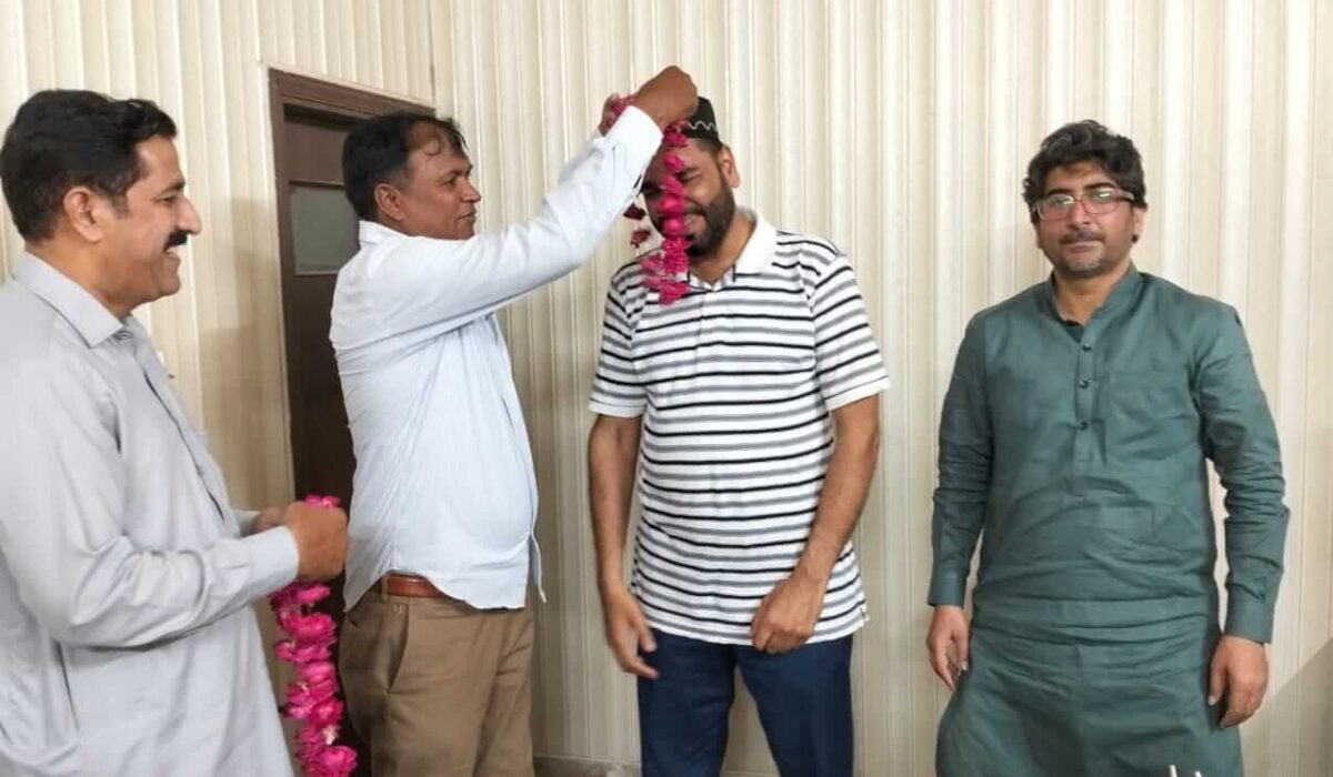 On 17.05.2024, I met the Deputy Director of the Information Department Munawar Hussain in his office and congratulated him on the successful performance of Umrah. It is a ritual of Pakistani culture in which friends and relatives welcome the person returning after Umrah by garlanding them with flowers. These gestures represent the best relationships among the community which enhances the possibilities of interfaith harmony that flourishes in a friendly atmosphere and shows mutual love.