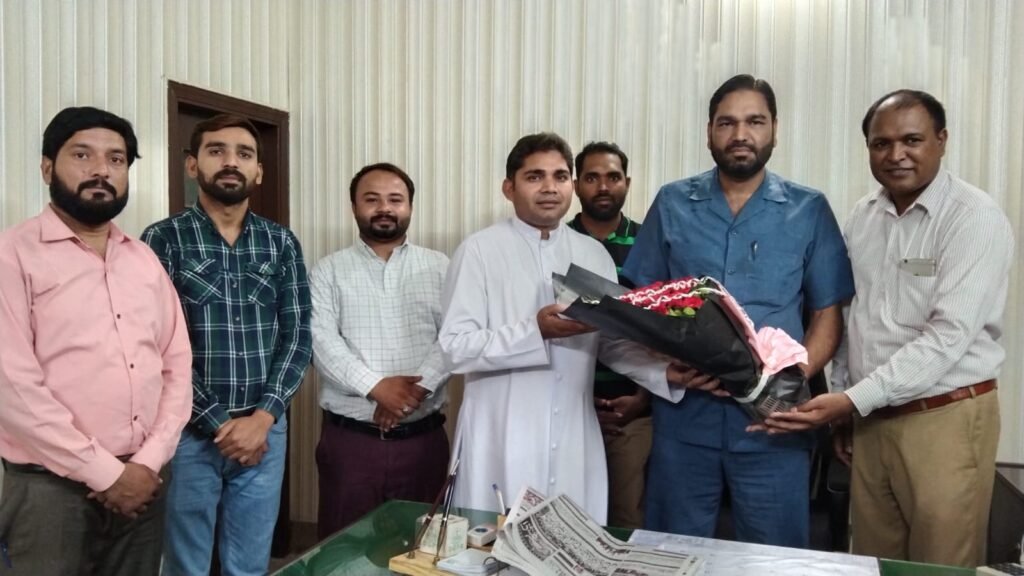 Prof. Shehzad Lawrence, a member of the District Peace Committee of Gujranwala, Reverend Father Shakeel Inayat, Parish Priest, St. Francis of Assisi Catholic Church, Francisabad, along with catechists, congratulated Munawar Hussain on his promotion to the post of Deputy Director at the District Information Office and presented a bouquet of flowers.